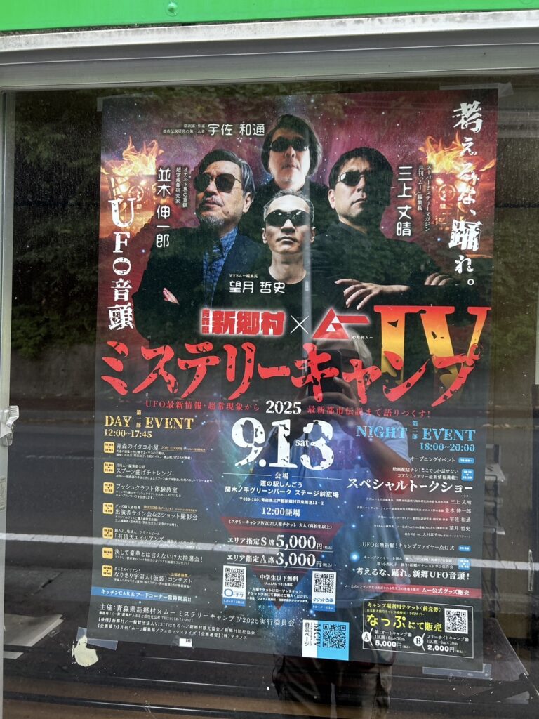 しかも今回『新郷村×ムー ミステリーキャンプ 2025』のポスターまで貼ってあって。