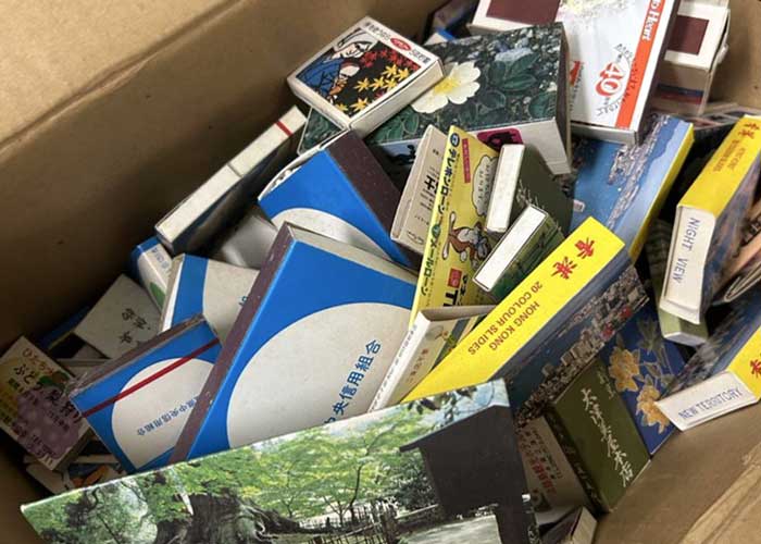 今回仕入れた中の1つは、信用組合や飲食店、旅館などの名前が入った古いマッチ箱。
