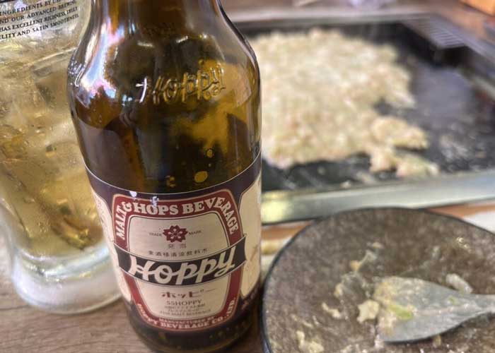 もんじゃ食って、ホッピー飲んで。