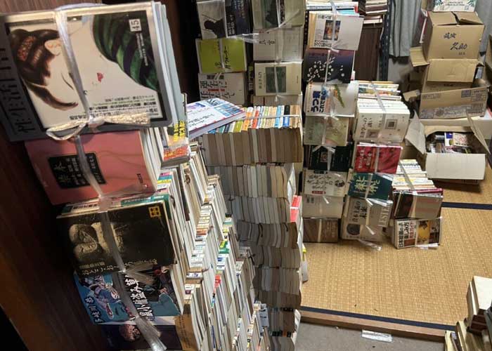 「使える本」「使えるかもしれない本」は束ねて縛って、「そうでない本」=「処分する本」はそのまま室内から運び出し。
