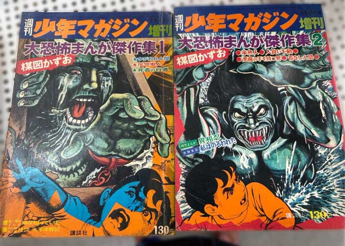 週刊少年マガジン増刊 楳図かずおの大恐怖まんが傑作集、2冊セット。